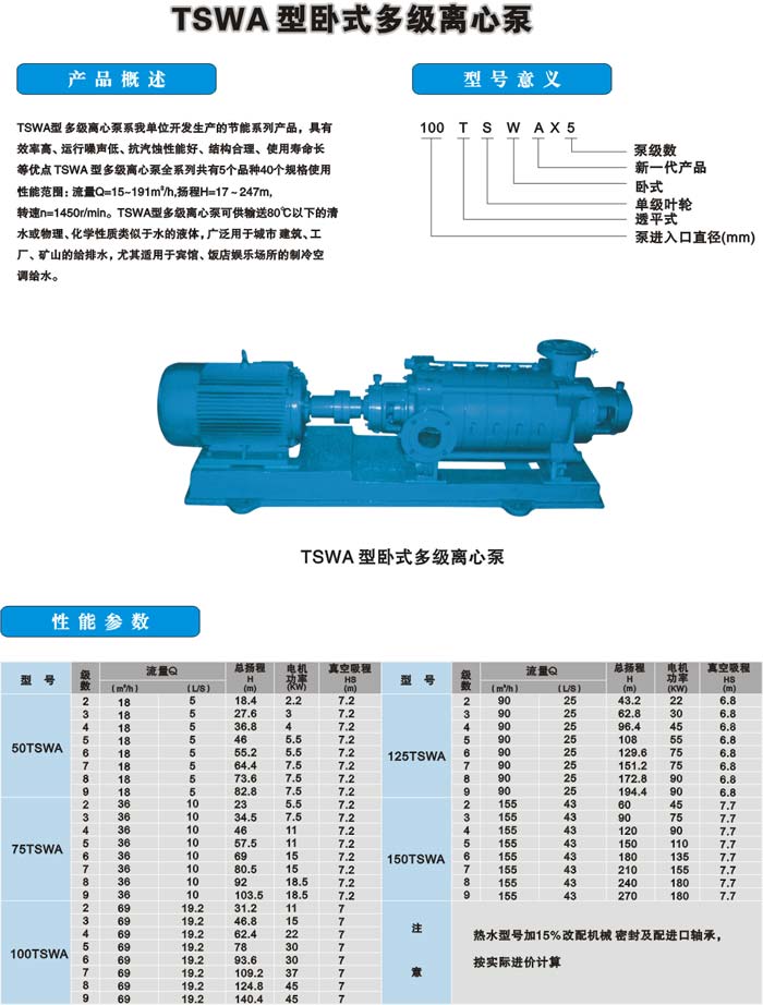 TSWA型臥式多級(jí)離心泵 您現(xiàn)在所在的位置:首頁(yè) >>產(chǎn)品系列>>TSWA型臥式多級(jí)離心泵